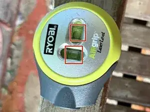 Обратите внимание, что пузырёк не в центре, что показывает, что качель не ровная.