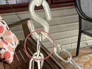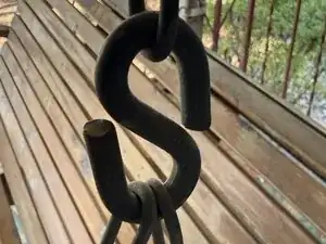 Осмотрите каждую сторону качели, чтобы определить тип крючка, используемого для подвеса (например, S-образный крючок, рым-болт, винтовой карабин или другие типы).