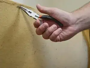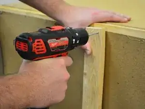 Используйте степлер, чтобы прикрепить оргалит обратно к каркасу комода.