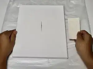 Поместите заплатку на порыв и разгладьте ее как можно лучше.