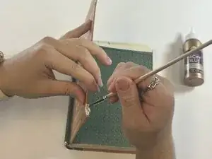 Нанесите PVA клей на повреждённый угол с помощью носика клея или маленькой кисточки.