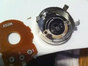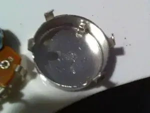 Здесь видно, что защёлки отогнуты назад в положение, в котором они были до разборки, и потенциометр снова собран!