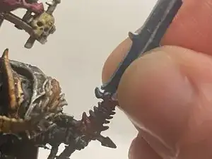 Эту технику также можно применять к другим сломанным или хрупким элементам, таким как посохи и шипы, если есть достаточно места для сверления 1 мм сверлом.