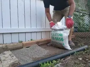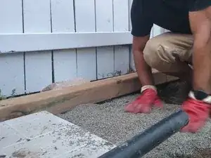 При необходимости добавьте излишки почвы или смеси из известняка, чтобы выровнять её с двумя другими плитами.