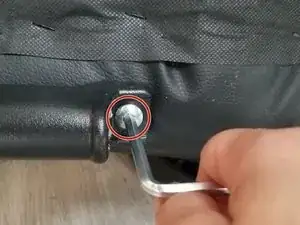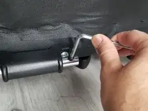 Закрутите четыре шестигранных винта размером 25 мм, расположенных внизу кресла, с помощью шестигранного ключа на 3 мм.