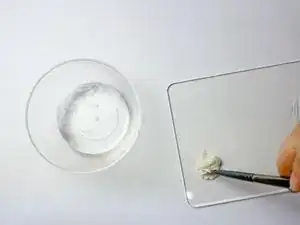 Добавьте немного воды к глине и разомните её кистью или пальцами.