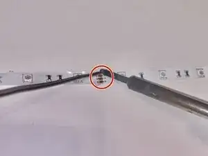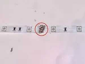 Паяльник и припой достаточно распространены и легко доступны в хозяйственном магазине. Лишняя длина ленты может остаться после первоначального использования — используйте её в первую очередь, прежде чем покупать новую, чтобы снизить затраты; убедитесь, что вы режете ленту для ремонта только по местам с этими четырьмя контактными площадками, они обычно отмечены пунктирной линией через них, именно здесь вы будете паять. Для возвращения лент на прежнее место может потребоваться клеящее средство. На задней стороне места соединения можно приклеить небольшой кусочек картона, чтобы удерживать их вместе.