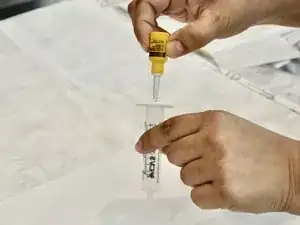 Вставьте наконечник шприца через стабилизирующую пленку.