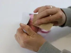 Используйте грубый кусок наждачной бумаги, чтобы удалить остатки клея и зашлифовать поверхность для улучшения адгезии клея.