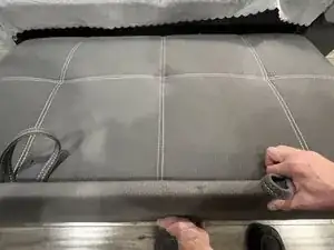 Этот шаг может потребовать удаления пылезащитной ткани ножницами с нижней стороны дивана.