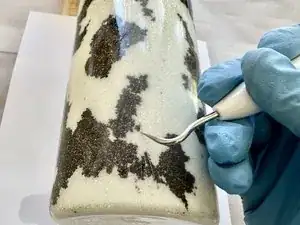 Если на изделии присутствует шелушение эпоксидного слоя, аккуратно удалите выступающие хлопья, чтобы предотвратить их попадание в новые слои смолы.