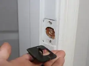 Большинство дверных рам сделаны из мягкой сосны, что означает, что новые отверстия будет очень легко сверлить. Это также означает, что поверхность может расслаиваться, когда вы начинаете сверлить новое отверстие, что может сделать новое отверстие некрасивым. Не переживайте, однако – это будет скрыто пластиной ответчика после установки.