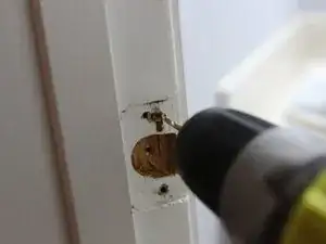 Используя сверло, немного меньшее, чем внешний диаметр винта, просверлите новые отверстия для винтов в дверной раме.