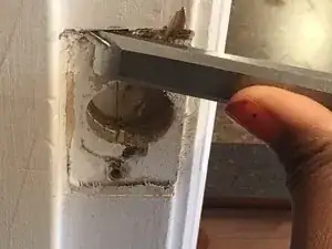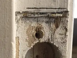 С помощью стамески выберите древесину выше линии, чтобы освободить место для нового расположения ответной планки.