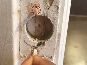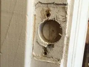 Поместите зубочистки в отверстия. Это предотвратит проворачивание новых винтов в старых посадочных местах, из‑за чего дверь снова сместится.