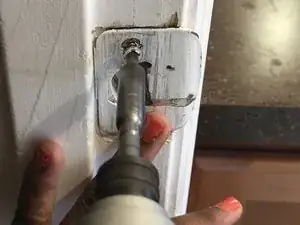 С помощью электрической дрели удалите винты с ответной планки.