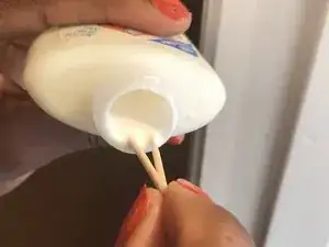 Возьмите столько зубочисток, сколько потребуется, чтобы заполнить отверстия от прежних винтов, и окуните их в столярный клей.