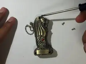 Осторожно загните искровой элемент так, чтобы он оказался рядом с отверстием в рту Merlion.