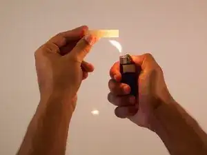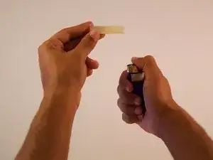 Разогрейте конец палочки термоклея с помощью зажигалки.