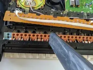 Если вам нужно заменить клавишу на вашем Yamaha PSR-280, следуйте данному руководству. Этот ремонт касается контактной подушки. Контактная подушка — это то, что ударяется о клавишу пиано и отправляет сигнал на динамики, чтобы воспроизвести определённую ноту. Когда клавиатура не хранится должным образом, между клавишей и контактной подушкой может накапливаться пыль, что приводит к её неработоспособности.