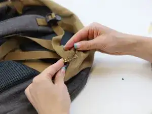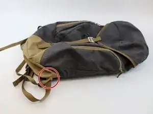 Примечание: Это оставит отверстие на кромке рюкзака (красный круг), которое пригодится на следующем шаге.
