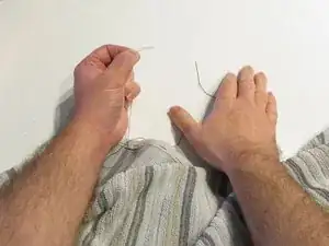 Несколько узлов помогут гарантировать, что нитка не протянется полностью через ткань.