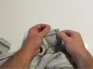 Возьмите верхний край полотенца и заверните весь подгиб к себе.