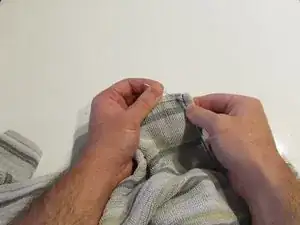 Держите обе нити и завяжите узел рядом с полотенцем, обрежьте концы.
