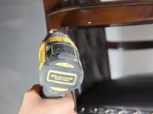 Снимите подлокотник со стула с помощью шестигранного ключа и дрели, чтобы выкрутить винты.