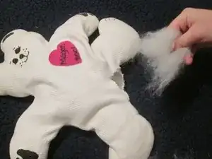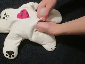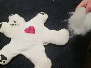 Используйте синтетический наполнитель для набивки медведя через разрыв. Добавьте больше наполнителя для более плотной игрушки.