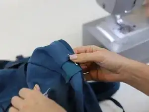 После того, как вы пришили первую сторону заплатки, добавьте больше швейных булавок, чтобы закрепить заплатку на месте, и продолжайте шить.