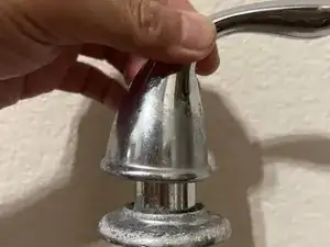 Используйте лопатку или пальцы, чтобы удалить резиновую заглушку, расположенную в центре ручки крана.