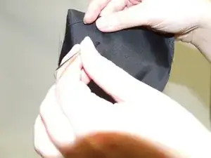 Сначала используйте ножницы, чтобы отрезать разрушенный нейлоновый материал внутри рюкзака.