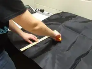 С помощью линейки вырежьте подходящую длину нейлонового материала, чтобы закрыть разрыв внутри рюкзака.