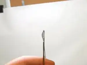 Проденьте нитку в иглу. Сделайте двойной узел на нити, чтобы закрепить её на игле. Затем отрежьте кончик нитки и лишний кусок двойного узла.