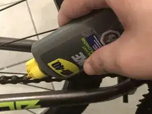 Используйте только WD-40, специально предназначенный для велосипедов; обычный WD-40 может повредить вашу цепь.