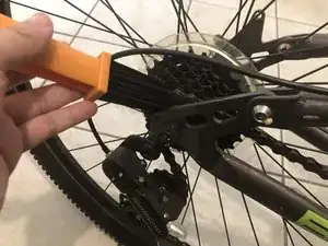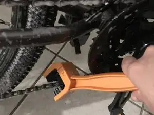 Используйте инструменты для очистки велосипедов, чтобы очистить цепь, звездочки, кассету и передний и задний переключатели, пока не исчезнет большая часть ржавчины.