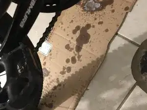 Положите кусок картона под велосипед, чтобы поймать излишки очистителя.