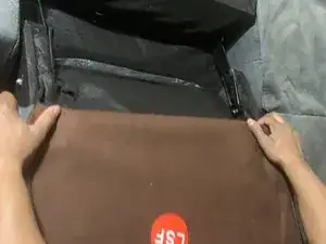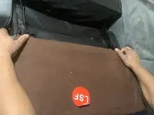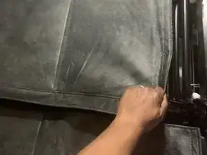 Перед началом убедитесь, что шнур питания, идущий от дивана, отключён и убран в отсек для хранения. Найдите отсек для хранения на задней стороне дивана после расстёгивания молнии.