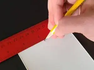 Снова используйте линейку и карандаш, проведите по центральной линии вниз примерно на 3/8 дюйма и поставьте точку.
