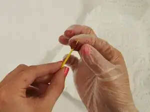 Используйте зубочистку, чтобы очистить и выровнять оба конца сломанной помады.