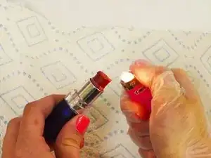 Поднесите пламя к обоим концам помады на 2 секунды или до тех пор, пока верхний слой не расплавится.
