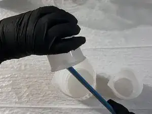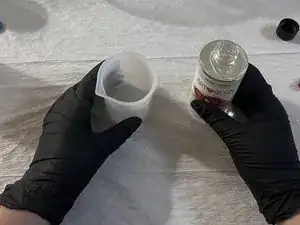 Соскребите остатки со стенок мерных стаканчиков, чтобы оба компонента полностью соединились.