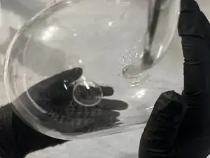 Когда смола полностью затвердеет, удалите излишки с поверхности стеклянного изделия с помощью салфетки, смоченной в спирте.
