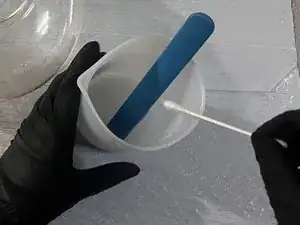 Используйте мешалку, чтобы помешивать смолу и отвердитель как минимум три минуты.
