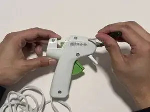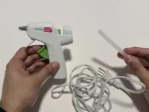 Отключите клеевой пистолет от сети и полностью дождитесь его остывания перед началом работы.