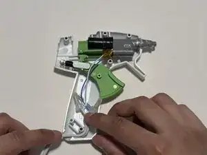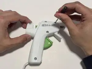 Используя крестовую отвёртку Philips #0, выкрутите пять винтов с боковой части пистолета.