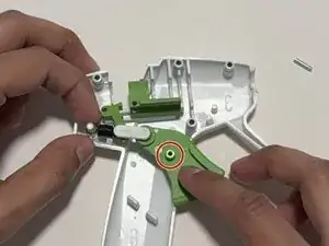 Вытяните серебристый штифт из верхней части курка и куполообразной детали и отложите его в сторону.