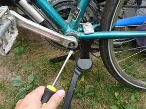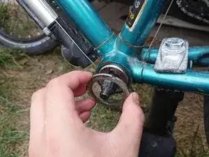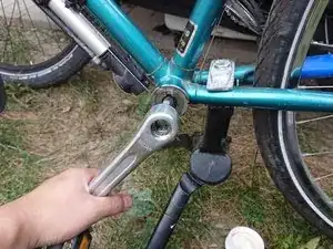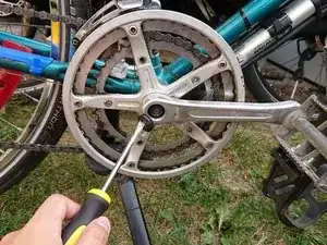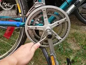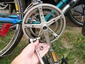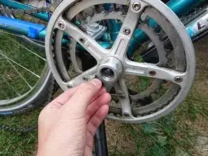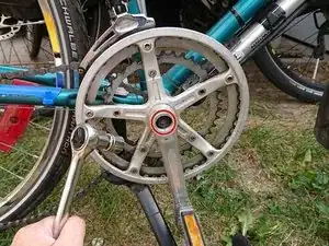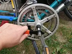 Выверните левую (неприводную) чашку каретки, вставив штифт-ключ в отверстия на фасаде чашки и поворачивая против часовой стрелки.