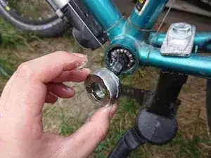 Нанесите большое количество велосипедной смазки на шарикоподшипники и внутрь правой (приводной) чашки каретки.